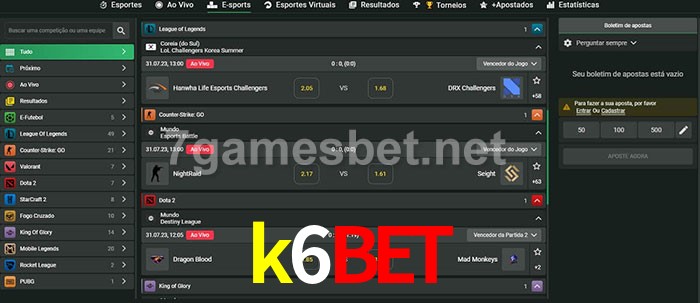 O k6bet oferece uma grande seleção de opções de apostas em e-sports com probabilidades competitivas
